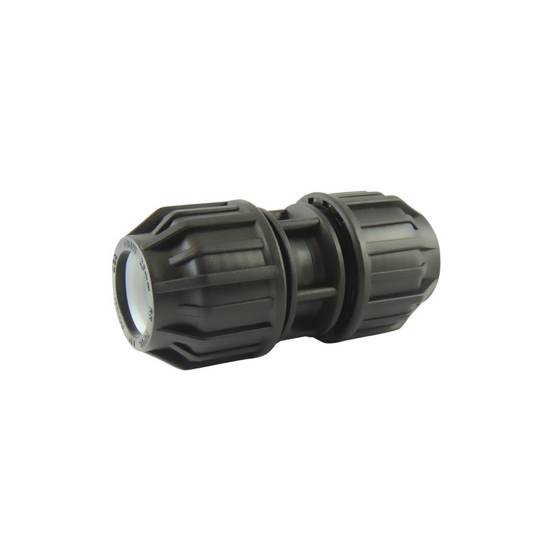Raccord polypropylène à compression pour tube PE - ManchonJoint lubrifié et imperdableEcrou ergonomique facilitant le serrageGencod individuel