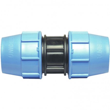 Raccord polypropylène à compression pour tube PE - ManchonJoint lubrifié et imperdableEcrou ergonomique facilitant le serrageGencod individuel