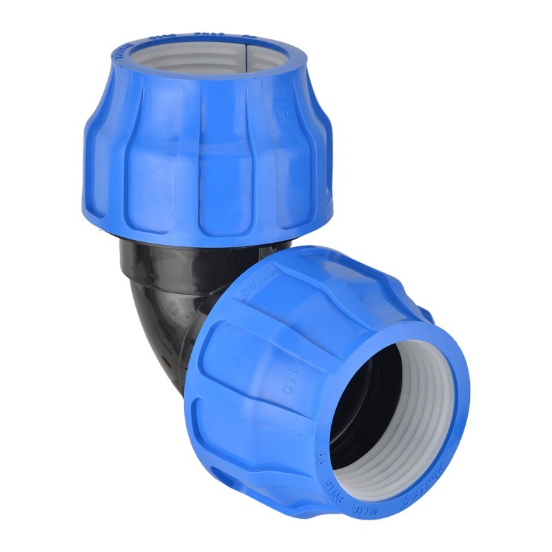 Raccord polypropylène à compression pour tube PE - Coude 90°Joint lubrifié et imperdableEcrou ergonomique facilitant le serrageGencod individuel